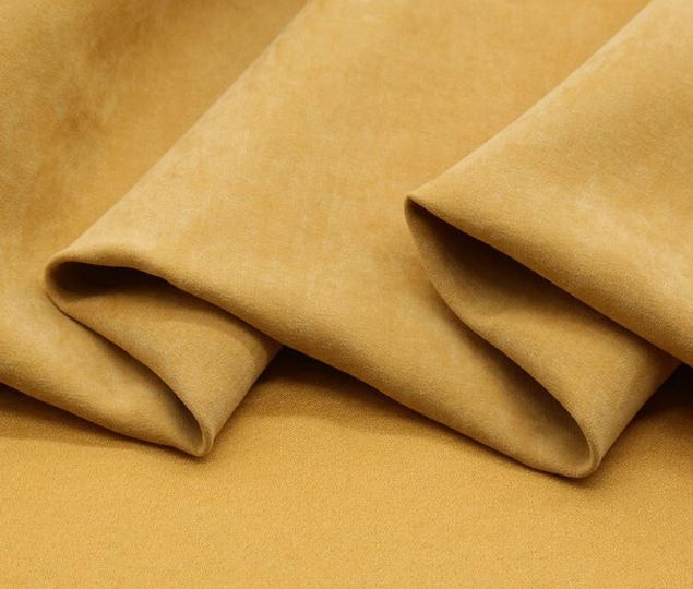 桃皮絨, 桃皮絨是一種織物表面觸覺和視覺都似桃皮的絨面織物。這是由超細(xì)合成纖維織制的一種度薄型砂磨起絨織物??椢锉砻娓采w一怪特別短而精致細(xì)密的小絨毛。具有吸濕、透氣、防水的功能以及蠶絲般的外觀和風(fēng)格,織物柔軟,富有光澤,手感滑糯。主要用作西服、婦女上衣、套裙等面料,也可與真皮、人造革、牛仔布、呢絨等搭配作茄克、背心等服裝面料。英文稱為polyester peach skin。