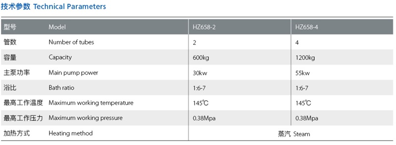 HZ658系列高溫高壓噴射染缸產(chǎn)品優(yōu)勢:高效益,1.薄、中、厚型布種之投布量大幅提高,降低單位成本并減少缸差。2.缸體特殊內(nèi)網(wǎng)設(shè)計,減少用水量使浴比視處理布種最低可達1:6左右。